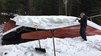 The third photo is of damage to the boat barn from the weight of the snow collapsing the roof.