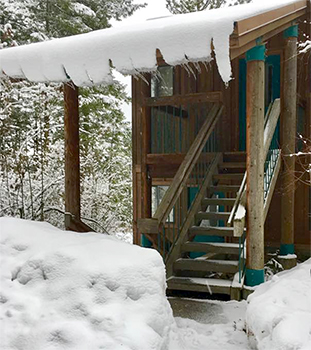 The bottom photo shows the pathway cleared to Spirit Lodge.