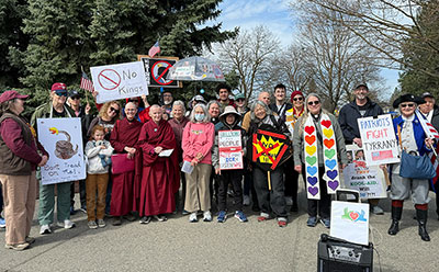 She showed slides of an FLLC Earth Day vigil with Tibetan nuns from Newport, the retired chair of the Spokane Tribe and people of faith joining the rabbi in a Jewish dance at the Episcopal cathedral.